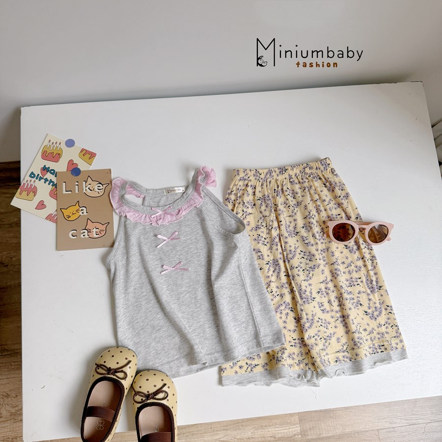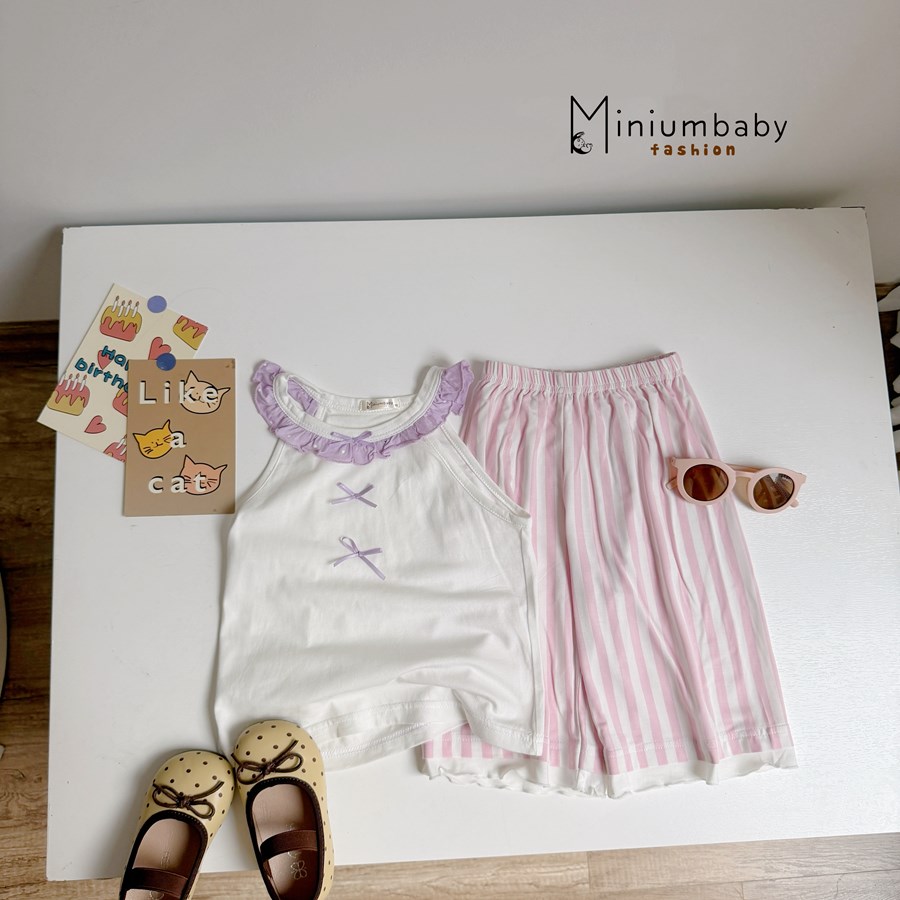 Bộ sát nách cánh tiên cổ zen đính nơ phối quần trơn