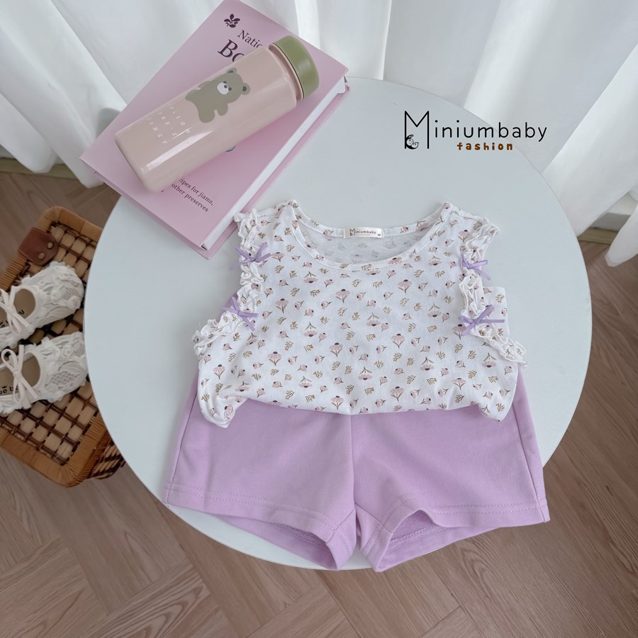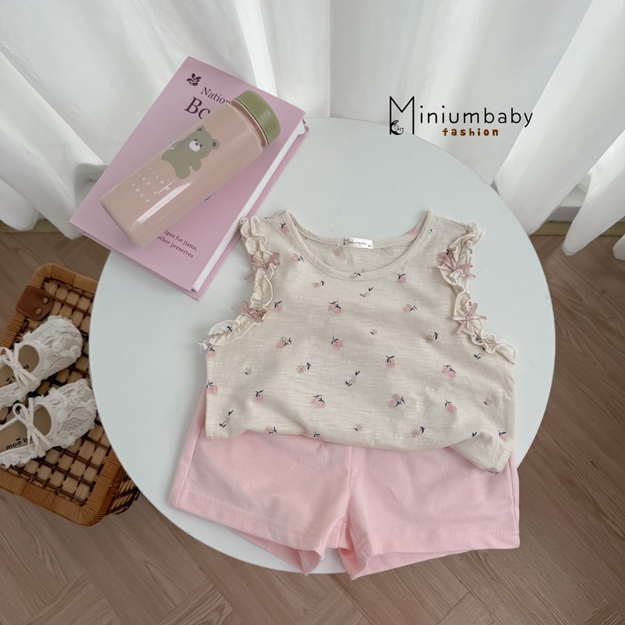 Bộ không tay quần đùi bé gái không cổ