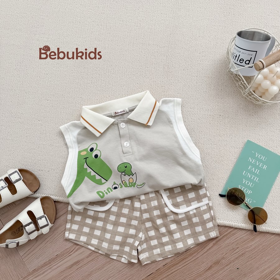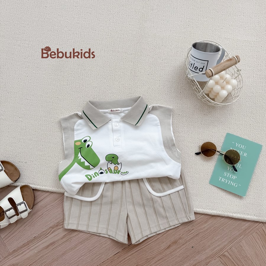 Bộ không tay quần đùi bé trai có cổ