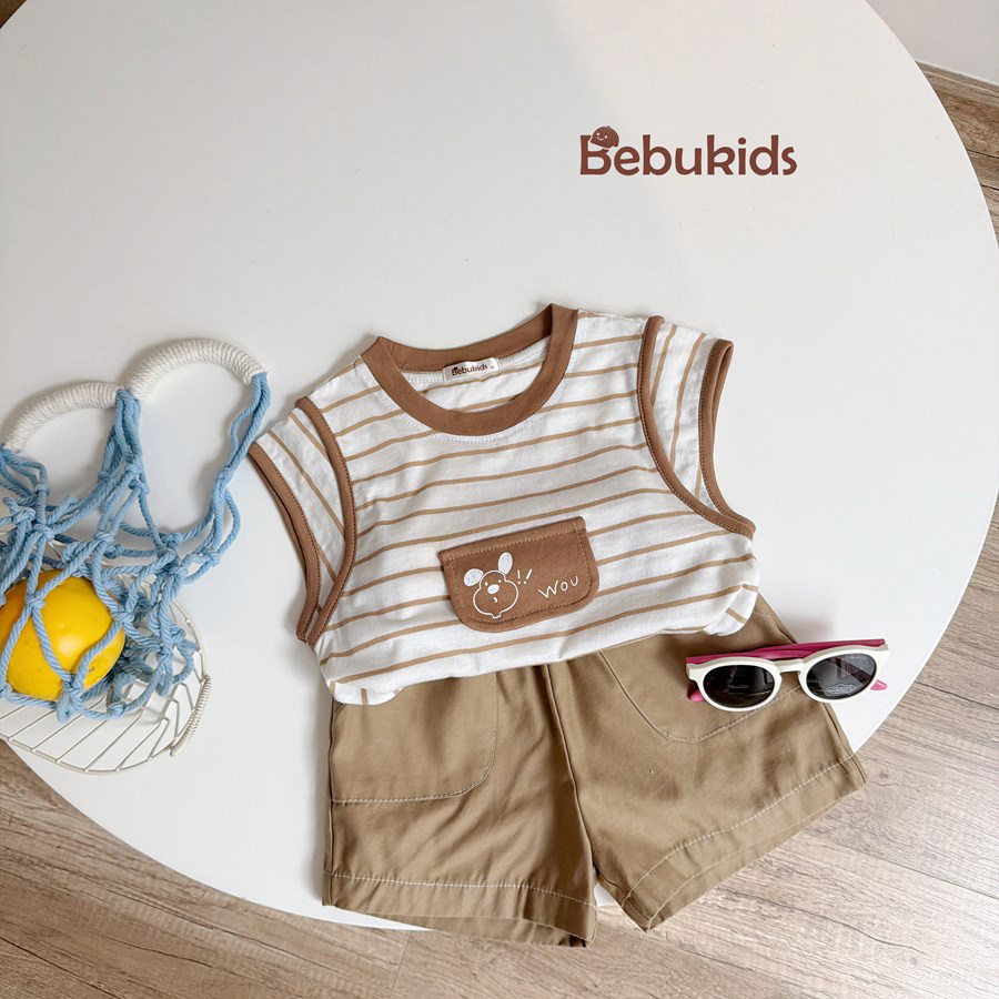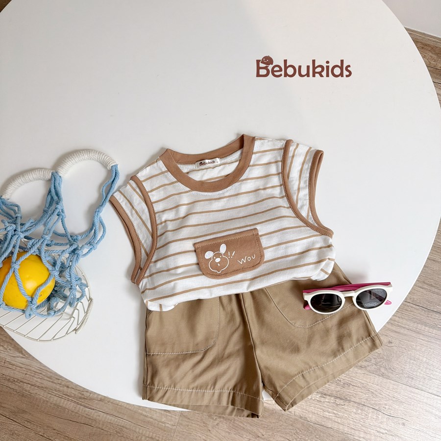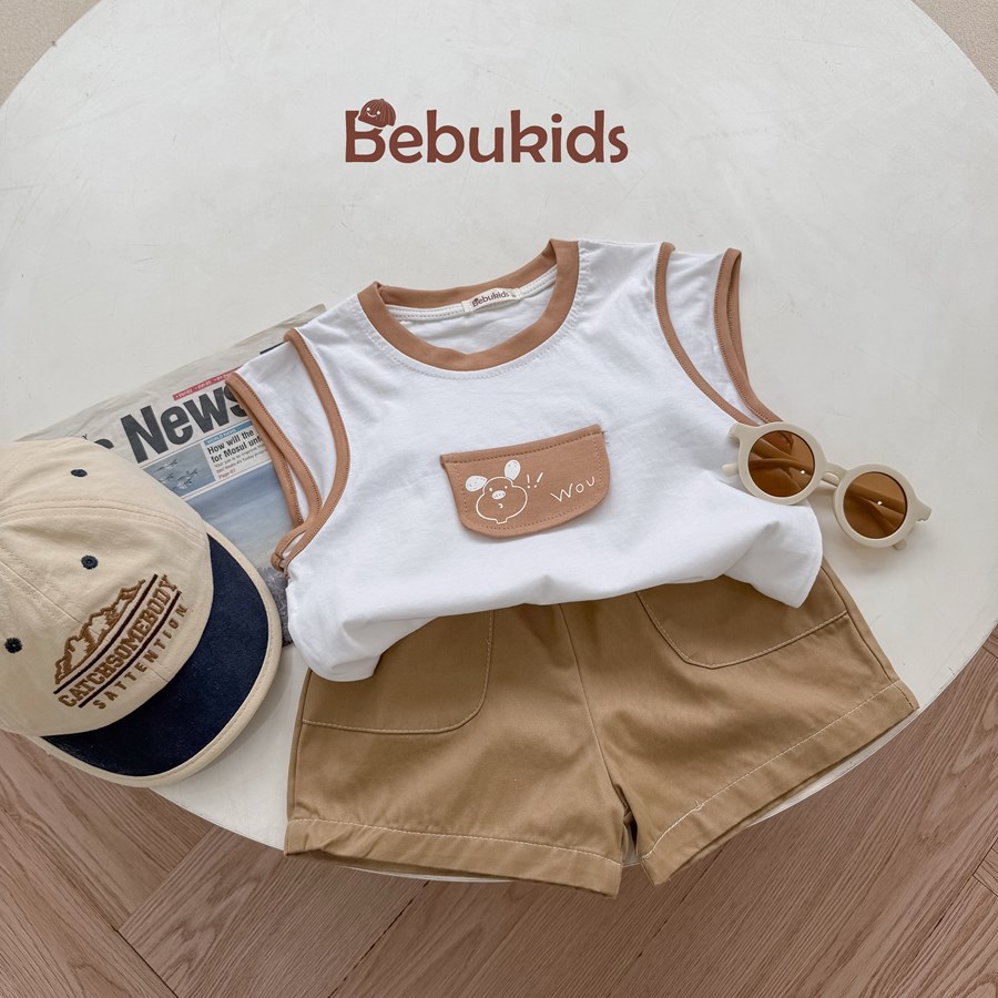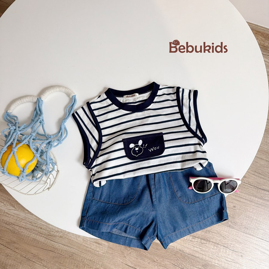 Bộ không tay quần đùi bé trai không cổ